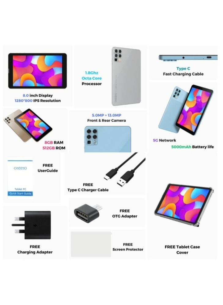 OTEETO Tab 8" HD Smart Tablet PC| تابلت تاب 8 / 8 انش مع كيبورد عربي